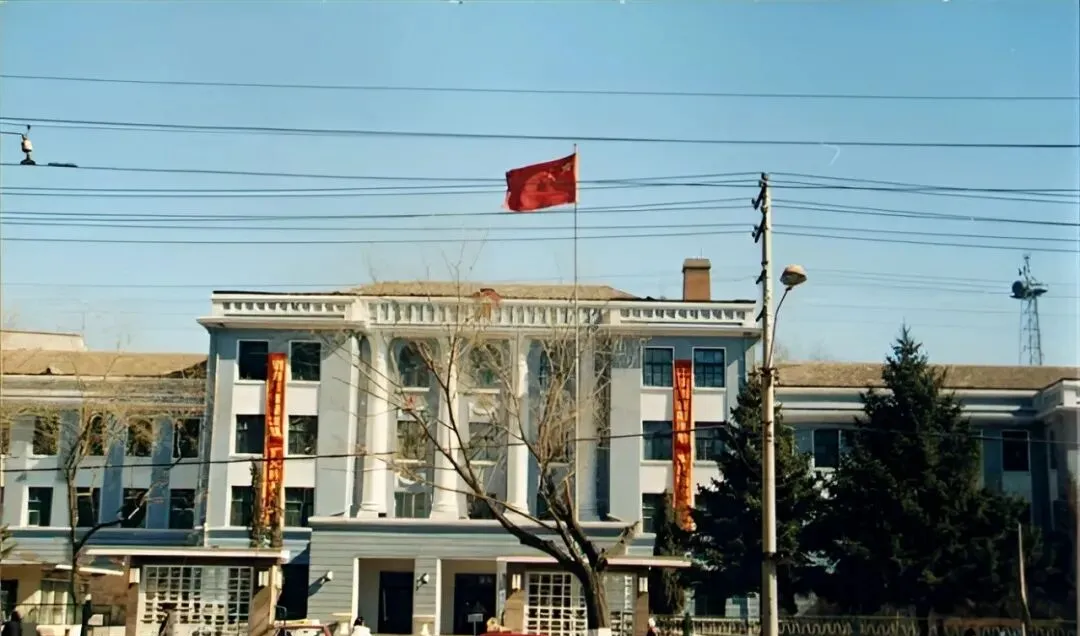 这栋白立面配柱廊的楼是老机关,红旗在空中抖,院子里小喇叭播通知,张贴栏上红纸黑字整整齐齐,门口站岗的大爷手揣在棉手套里,见熟人就点点头,庄重又亲切。