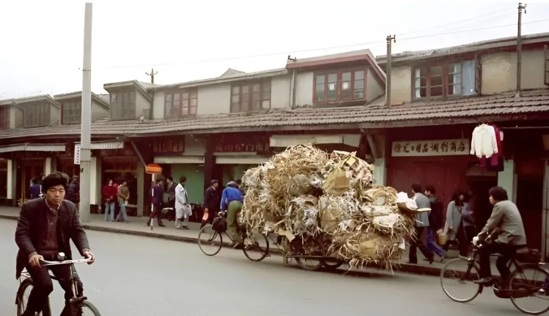 车厢上垒着一大堆纸板和草绳,像个移动的小山,大爷身子往前探着使劲蹬,车辙压在路边的水印上,发出吱呀的声儿,行人侧身让一让,冲他喊一嗓子慢点啊。