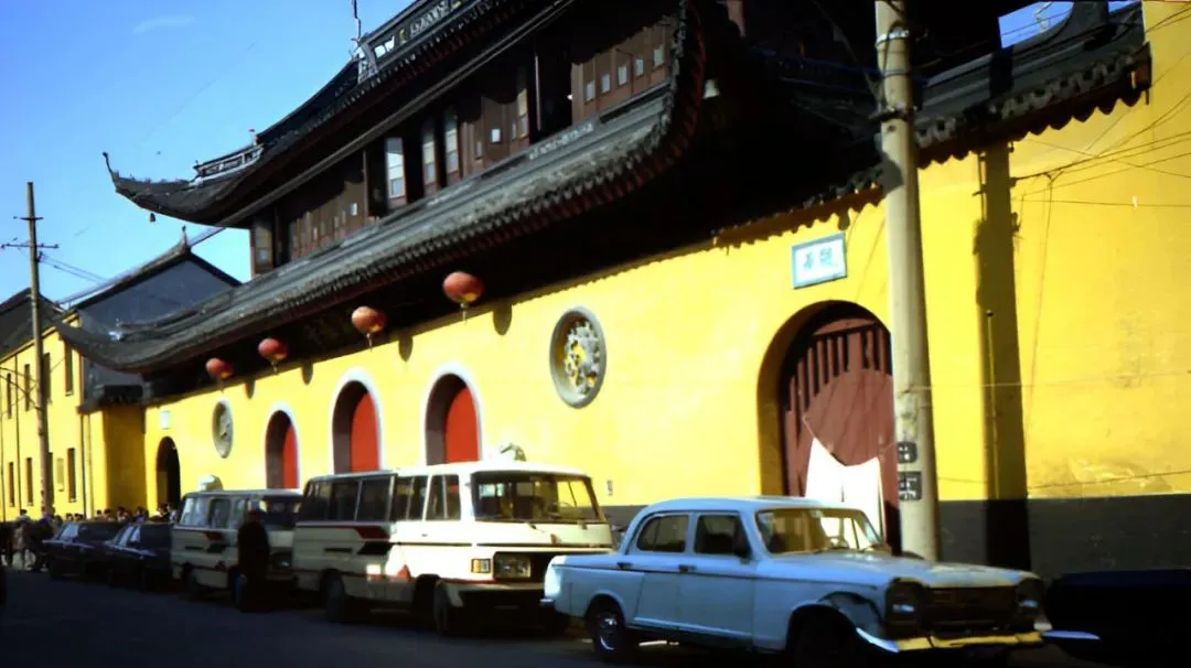 这道杏黄色的外墙一眼就认,是玉佛寺,圆窗里镶着花样,红门厚重,门口一排外宾车靠着,阳光一照墙色发暖,香火味顺着门缝往外飘,安静得很。