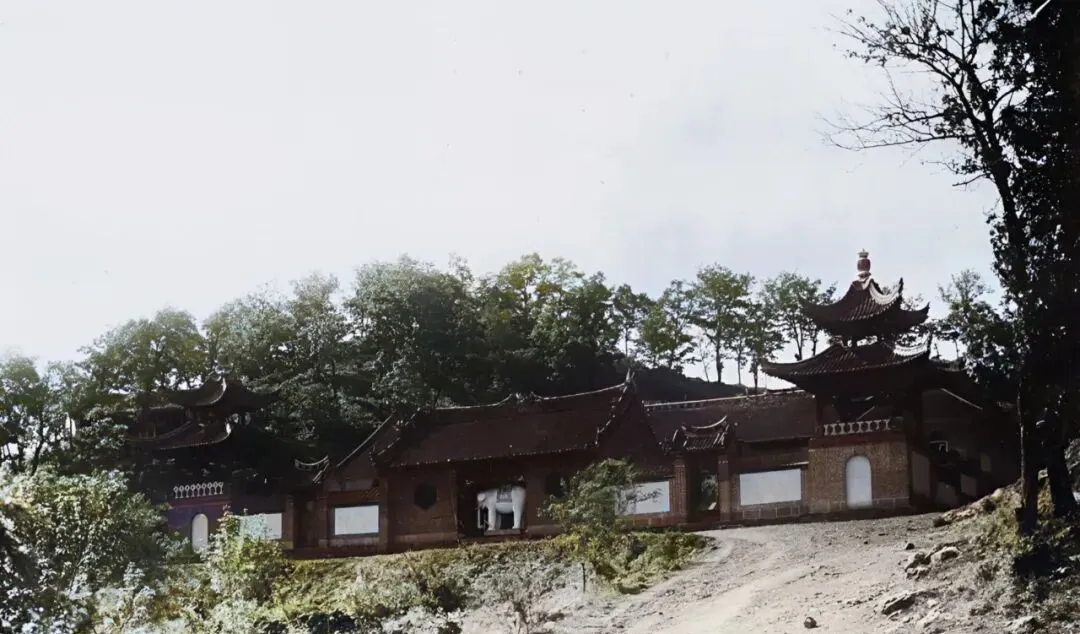 这排檐角飞扬的殿宇叫玉皇阁,砖墙红里泛褐,门洞里立着一头白石象,树林把屋脊半掩着,山风过来,琉璃瓦微微一闪,像给人眨了个眼。