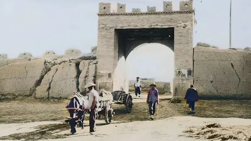 这个方脑袋的城门叫西城门,砖石叠得厚实,中间拱洞高,顶上还立了女儿墙,城墙年头久了,边上裂出几道槽,赶牛车的从洞里咯噔咯噔过去,车辙在土路上压得直直的,奶奶说那会儿进出全靠这道门,想想现在一脚油门穿城而过,真是快得让人反应不过来。