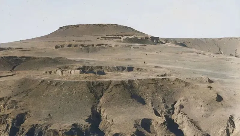 这片土屋屋顶铺草,墙面起毛,炊烟从屋脊慢慢冒出来,远处红山像伏着的兽,晚饭点到了,狗在院口打了个长长的呼哨,家家户户该收工了。