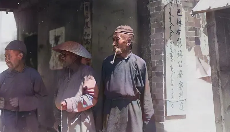 这面墙上挂着牌匾,是巴林右旗公署审判庭,门洞里阴凉,几位老者叼着旱烟靠墙站,神情各不相同,听说是等个结果,放在如今,手机一查流程清清楚楚,过去全靠人守在那儿。
