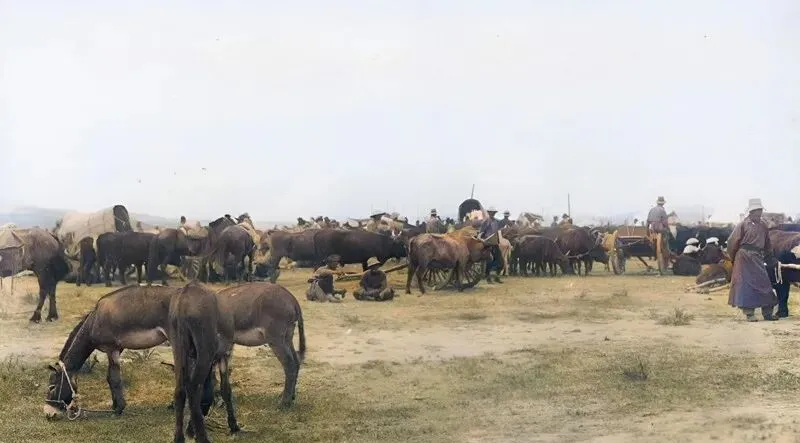 这处空地叫马市,马匹围成半圈,鬃毛顺着风摆,几个经纪人把着缰绳说价,手指一比一画,买卖一合掌就成了,牛羊在旁边打盹,地上留下深深浅浅的蹄印。