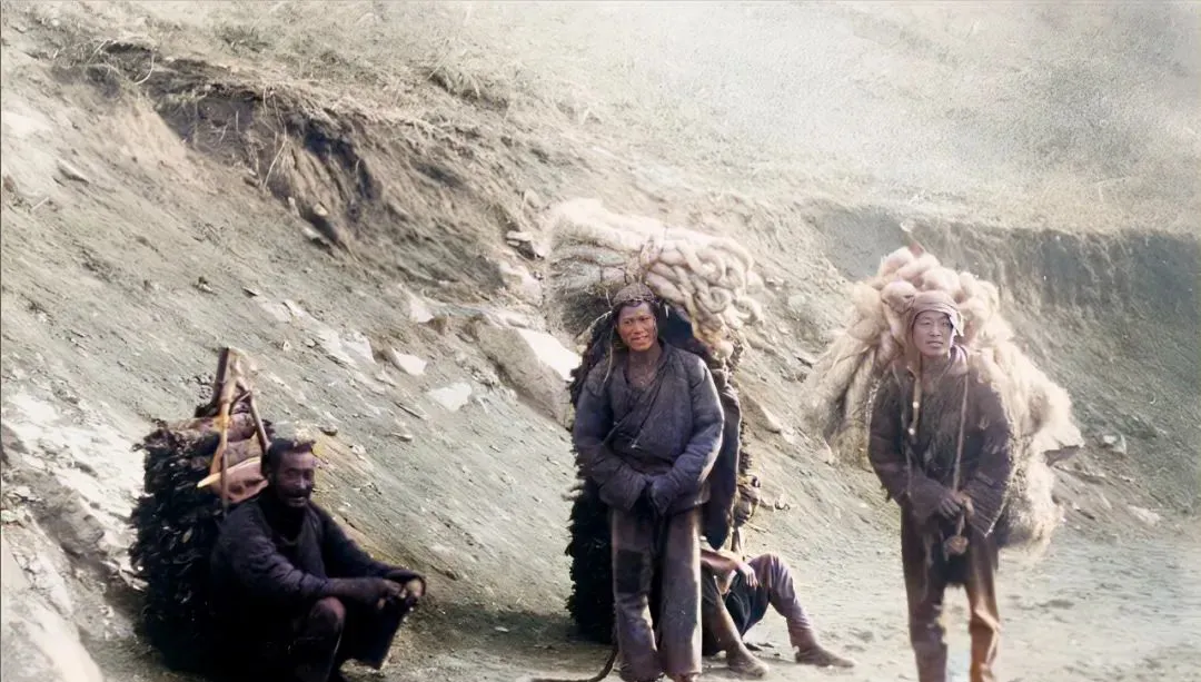 这三人的背篓里鼓着麻丝,竹编背架勒在肩窝,走急了绳子会吱嘎响,他们就在路边蹲一会儿,掏出干饼子咬两口,互相抖抖身上的土,又起身赶路了。