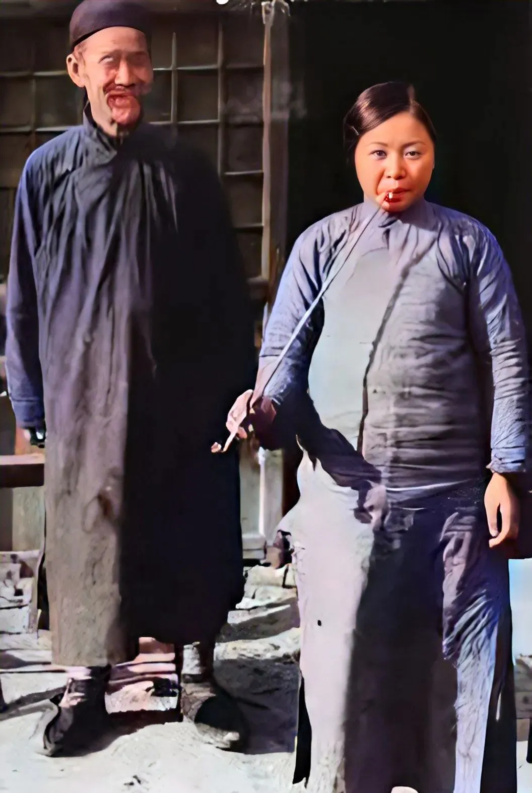 这个细长的烟杆叫烟袋锅,年轻女子噙着口,火星一点红,身后的老父亲笑着摇头说抽慢点,风大,烟灰别飘屋里,日子清苦,这口烟图个缓气。