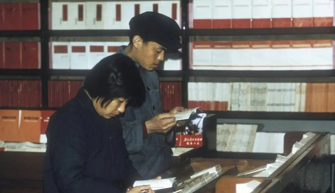 图里这柜台叫借书卡台,木抽屉一格一格拉出来,卡片边角起了毛,手指一捏就能听见“沙沙”响,我妈说那会儿要赶新书,得早起排队,拿着钢笔在登记簿上一横一竖写得认真。