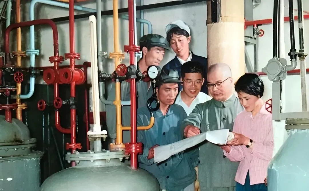 图中这排设备叫直流稳压电源和示波器,外壳是浅蓝铁皮,旋钮一圈圈刻度清楚,学生穿白大褂低着头焊接,烙铁头一碰就“呲啦”一声冒白烟,味道冲得人后退半步,我爷爷说那会儿守着实验台,一坐就是一上午。