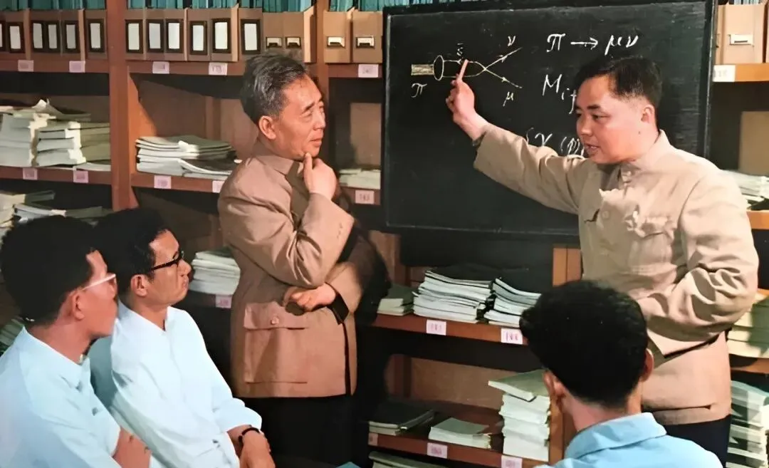 这个粉笔画的Y形图叫费曼图,旁边写着希腊字母,老师拿木指挥棒点着板书,抽屉里摞着期刊,一本一本贴了标签,学生脑袋齐刷刷跟着动,那时候没有动画演示,就靠这几笔把门道讲清。