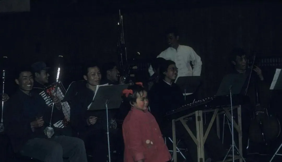 这边的队伍叫校乐队,手风琴一开合,簧片声“哗啦”像小瀑布,一旁小姑娘红棉袄绕着走两圈,怯生生却忍不住笑,音乐一响,连冻得硬邦邦的手也跟着热了。