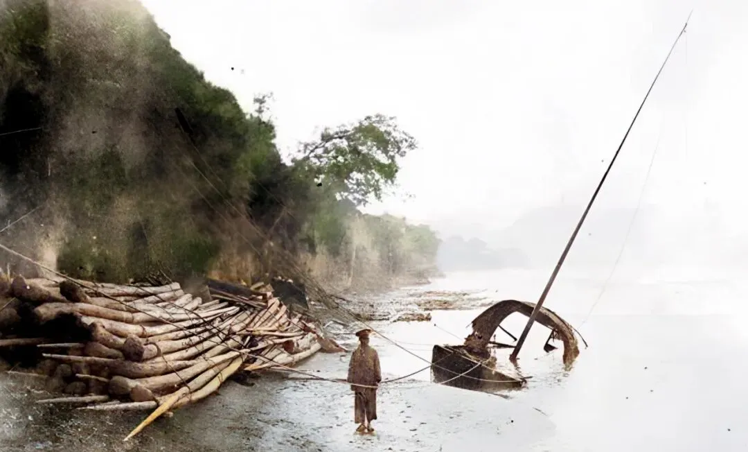 这一弯里,左边是捆好的木排,右边半截沉船骨露在滩涂上,民国混战时,渔民怕被征去搭浮桥,干脆自己下锚钻孔,眼不见心不烦,现在讲是“保护性自沉”,听着学术,心酸却一点没少。