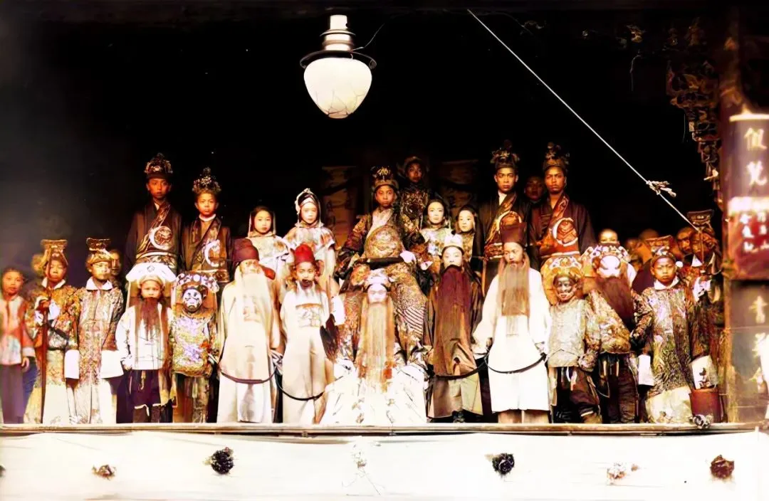 这一整排妆容浓重的是川戏班子谢幕,黑白脸一站出来就把台口压住了,灯泡吊在正中晃晃悠悠,孩娃儿被大人托着看热闹,掌声砸在木地板上,发出空空的回响,现在演出换成了舞台剧,可那股子“锣鼓一响人就齐”的劲儿还在。