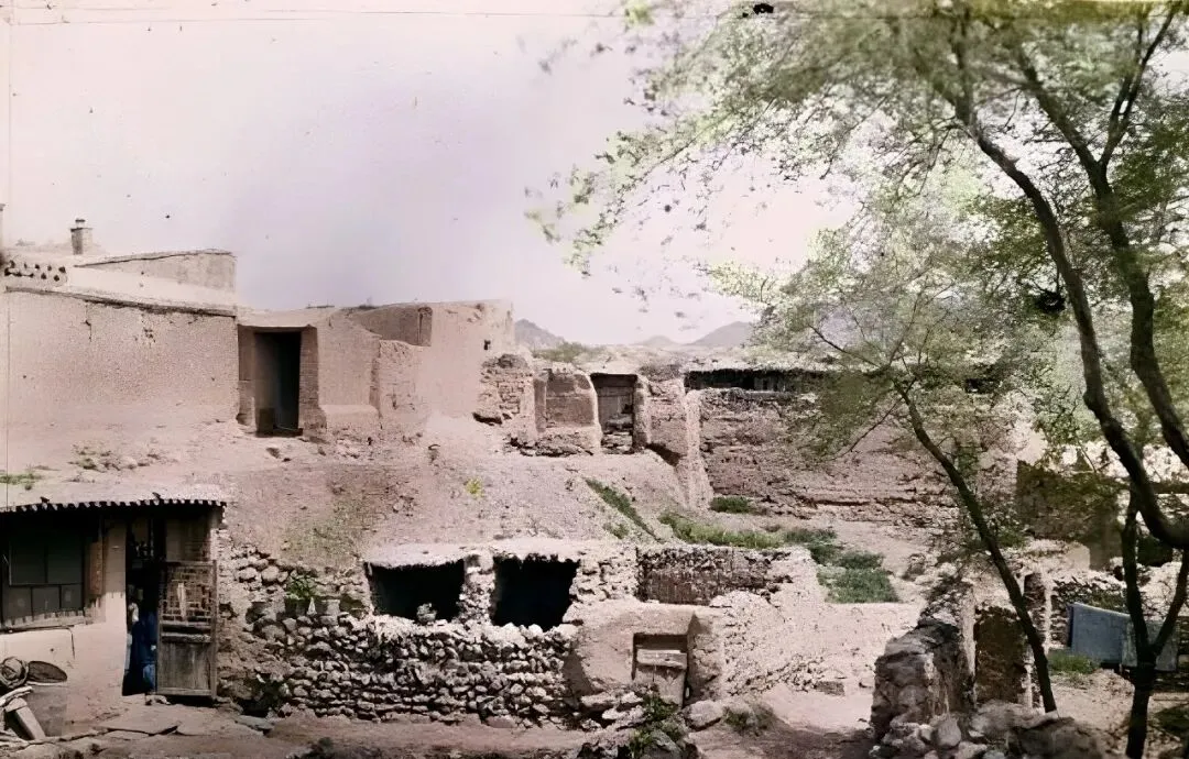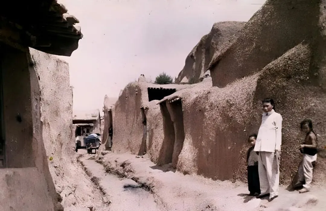 近景这排土屋,门楣上压着木梁,檐口插着秫秸,雨一来就顺着滴,屋里暗些,可冬天保暖,爷爷说那会儿“屋小火旺”,人挤着才暖和。