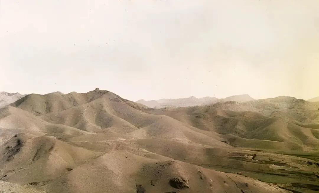 这张只看见天和地,地平线像一根绷紧的弦,唯一的点是坡坳里的一处屋顶,老照片最会留白,越空越耐看。