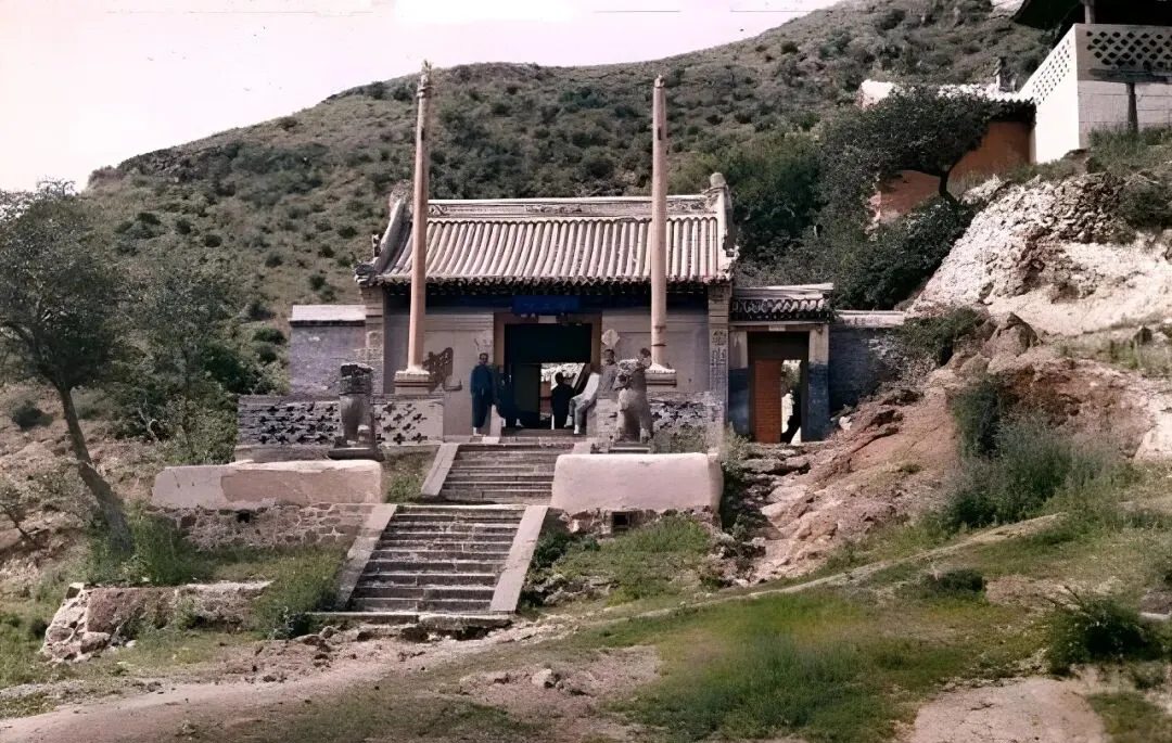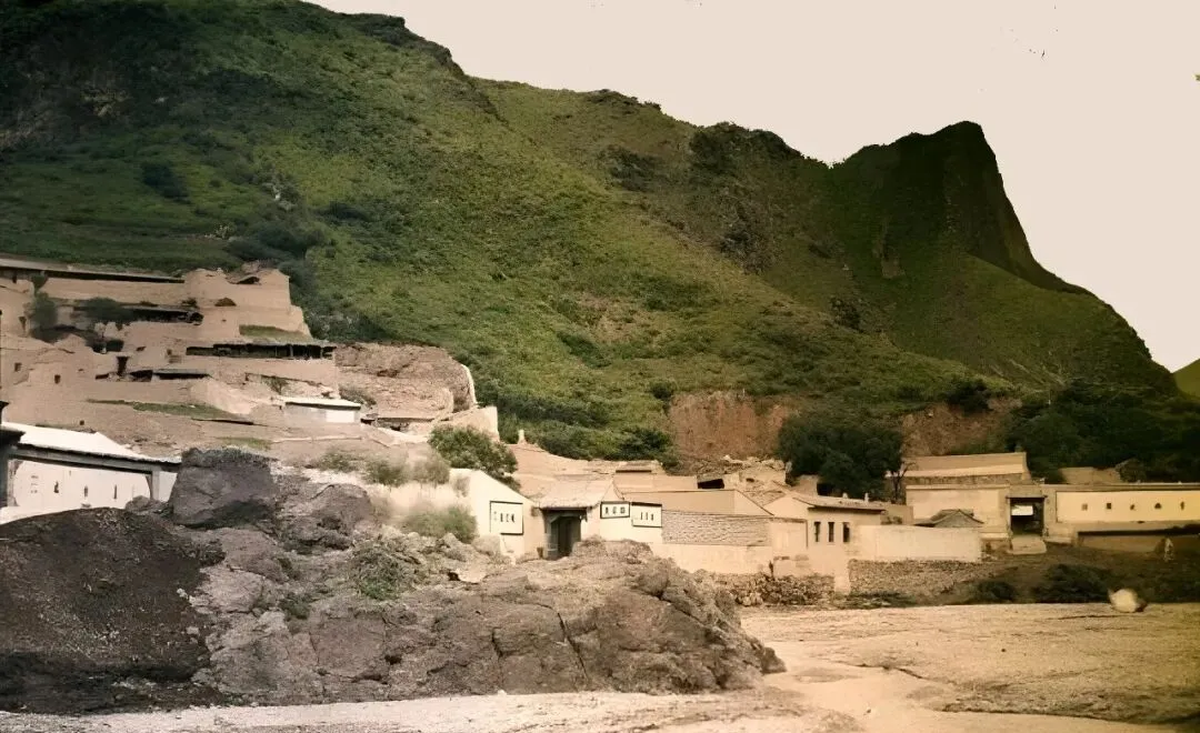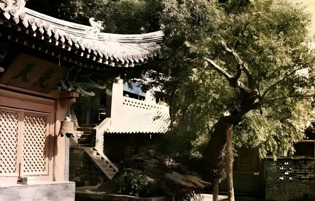 这张能看出庙宇一溜儿攀着山体往上爬,白墙黑瓦,间或一段石砌护坡,门额上小字看不清了,可气派还在,隔着百年也不怯。