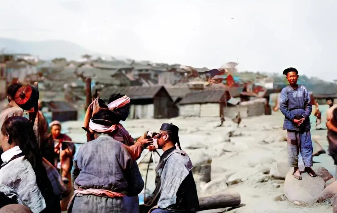这一排弯腰忙活的洗衣妇,膝旁一只木桶,石缝间卡着皂角,咚咚敲在光滑的洗石上,节奏比现在的洗衣机还稳,小时候我被拎着耳朵叮嘱别靠近滑坡,转眼到今天,阳台上一按按钮就等晾晒了。