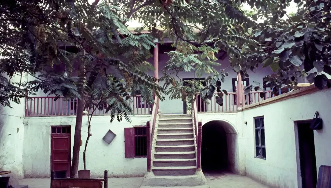 这座两层小院,台阶从院心直直挑上去,扶手是木桩连栏,树梢把天切成碎片,地上有孩子踩过的灰脚印,就这么普通,却是最像家的样子。