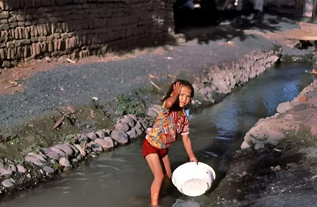 小溪里的水冰凉,孩子端着白搪瓷盆,弯腰把头发拧成小辫,抬手挡太阳,眼睛被光一照眯成一条线,以前夏天就这么洗洗头,哪像现在家家都有热水器。