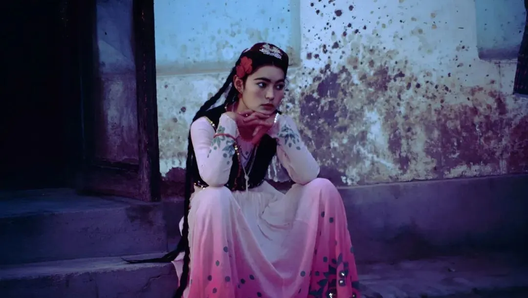 这一位跳累了坐在台阶边,双手托腮望着远处,头发上别着红花,裙摆上有一圈小亮片,灯光一打就闪,旁边墙上斑驳的旧痕,比滤镜更有味道。