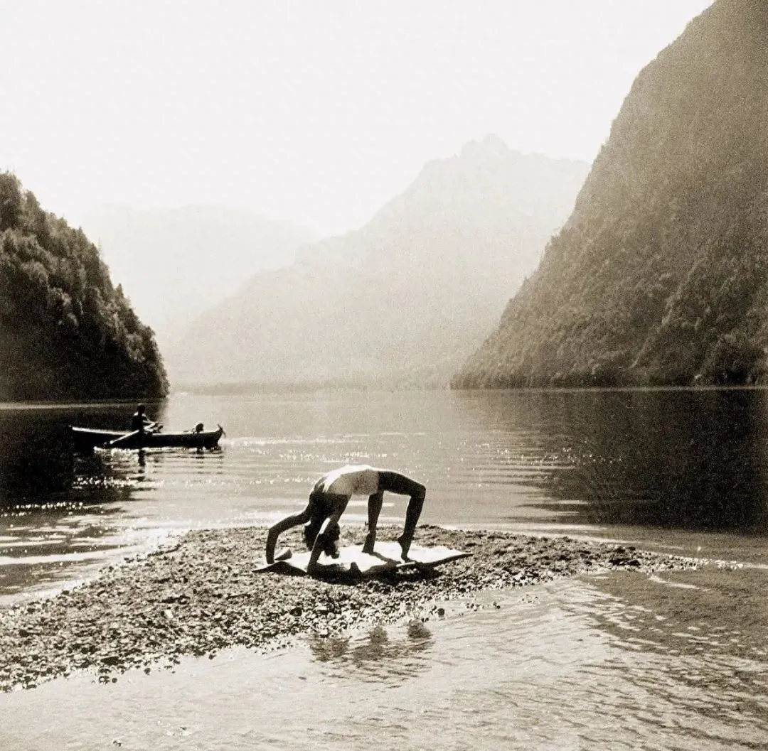 爱娃·布劳恩在科尼希湖湖边做瑜伽,巴伐利亚,1942