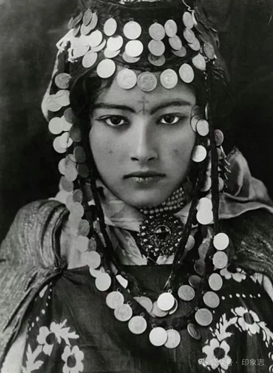阿尔及利亚本地部落的一名年轻女子,约 1905 年