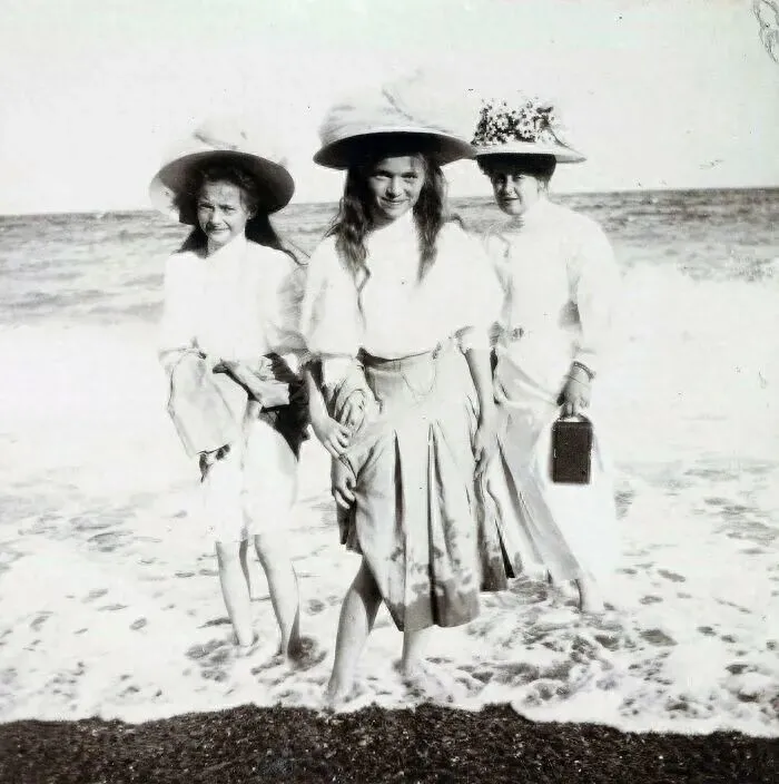 1908 年,沙皇尼古拉二世的女儿们在芬兰的夏季游轮中