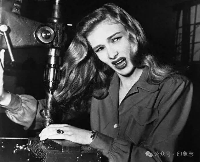 1943 年 11 月 9 日,美国电影女演员维罗妮卡·莱克 展示了留着长发的女性在工厂里会发生什么