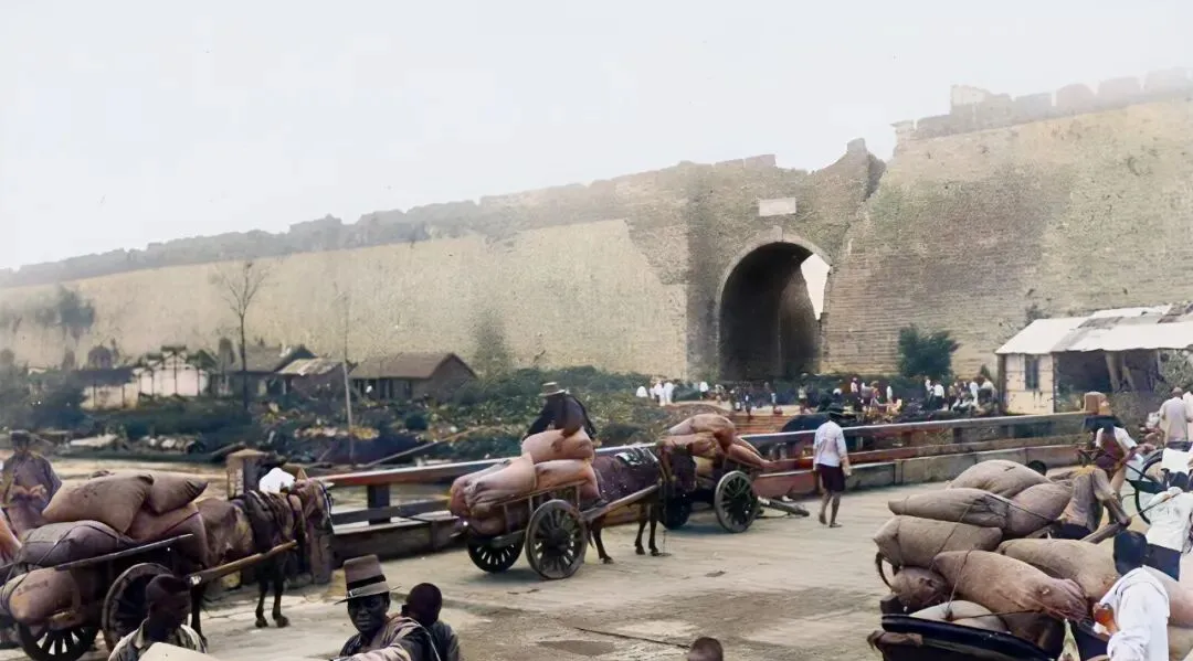 这个大门就是中华门,瓮城外马车一辆接一辆,麻袋鼓囊囊堆在车上,伙计扯着缰绳等号子,等到桥板一响,整队往城里挪,如今城门看景,车流早换成高架上那一串灯。