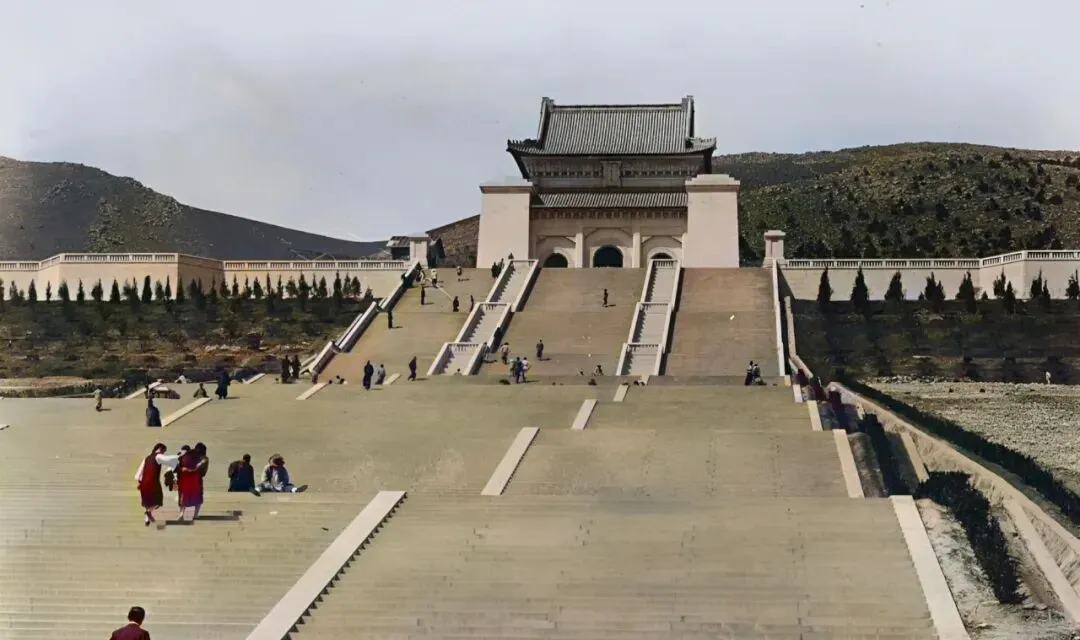 这堵高墙一样的就是明楼,墙脚边草窸窣响,拱洞黑得像一只眼,以前屋顶毁了,只剩空架子,现在补上了金黄琉璃瓦,晴天照得人眯眼。