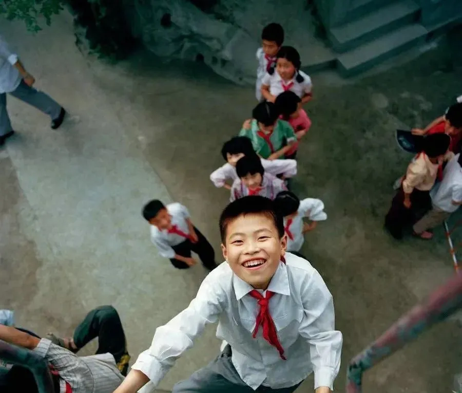 大家举起手来,红领巾晃得跟小旗一样,谁家相机最先按下快门谁就成了摄影师,后排的还踮着脚尖,非要把脑袋挤进画面里。