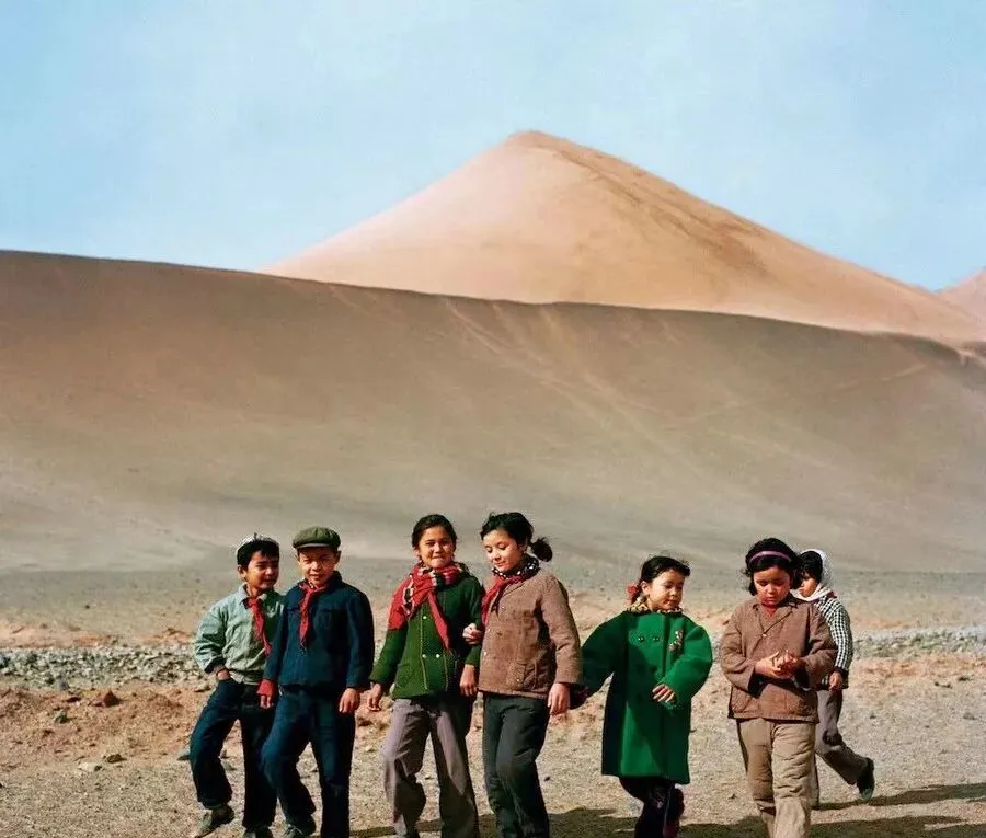 这片开阔地叫风口,风过去沙子刷刷响,红领巾紧贴在胸前,大家手挽着手聊得停不下来,鞋底进沙,回到住处一倒,半碗黄粉似的落了出来。