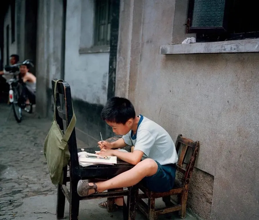 这个小板凳腿都歪了,还拿来当书桌,铅笔写得咯吱咯吱,墨水瓶捏在脚边,太阳往墙上一挪,影子也跟着动,写到最后一页,抬头一看天都晚了。