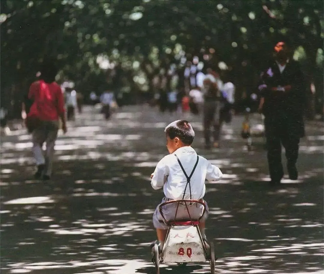 这辆铁皮三轮车后座漆掉了一块,车铃一按叮当清亮,树影碎成一地,踩着就像在水里划,爸爸在后头喊慢点,脚下偏不慢。
