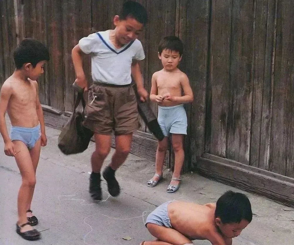 地上歪歪扭扭画着格子,谁踩线就淘汰,书包往墙上一靠,汗顺着脖子流下来也不擦,天黑了还不散场,家里人端着饭勺来抓人。