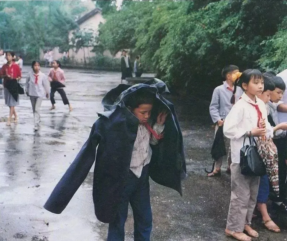 没带伞的就把外套顶脑袋上,鞋不合脚的吱吱响,老师喊排好队,谁理啊,一脚踩进水洼,水花炸开一朵,这才像雨天。
