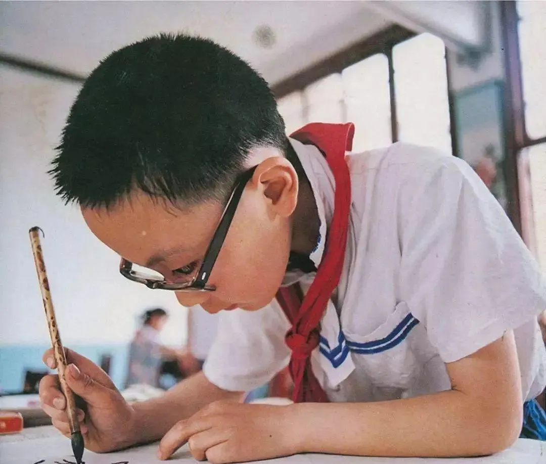 细杆的毛笔尖儿一点一点蹭,墨痕黑得发亮,眼镜片上起雾,也舍不得抬头擦,老师说写字像做人,横平竖直,我那会儿是真信。