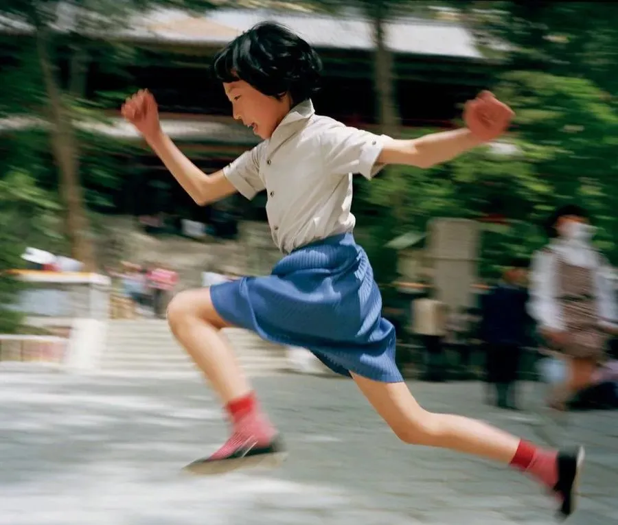这一步跨得真大,裙摆飞到半空,脚面绷直,像小鹿一样,旁边人影全糊了,只记得她在风里笑。