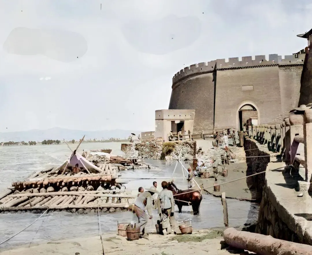 这个河边的小码头就挨着瓮城,木筏扎得肥厚,羊皮鼓被晒得发亮,船工在筏上搭了篷,渔火一晚能亮到对岸,挑水的把扁担往肩上一卡,桶口溅出水珠,撇开脚丫子就上岸,城门洞里阴风一来一回,喊声全被回荡着裹回去。