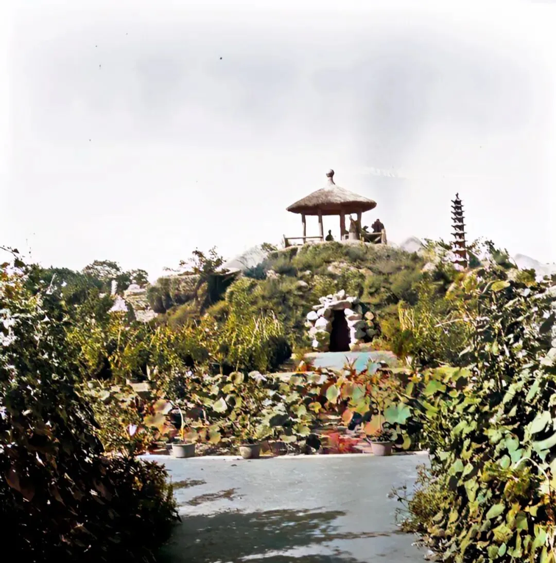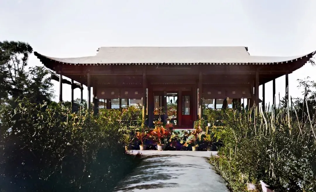 这个玻璃窗大暖屋,四面都开敞,窗框是深色木头,门楣上一圈细细的纹,门口整一溜花盆,叶子油亮,顺着弯弯的甬道走进去,潮气扑脸,年轻人爱在这儿拍照,老照片里的人呢,多半是来借一阵子花香解乏。