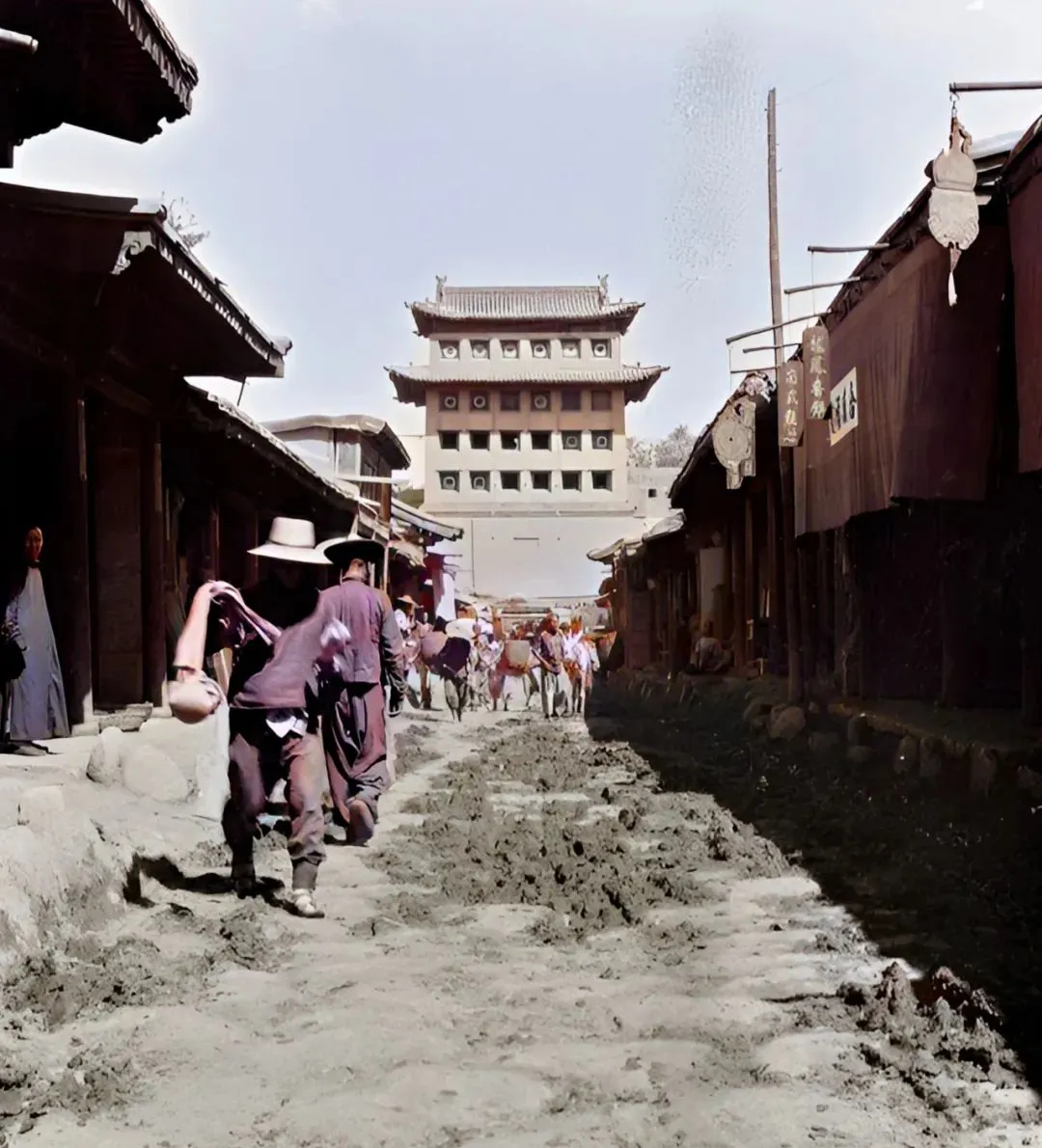 这张从街上望去的城门楼,四层箭窗,层层往上,街正中被驮队占着,铃铛当啷响,赶驼人把鞭梢一甩,尘土立起一股子烟,铺子门口的人伸着脖子看,生怕错过了啥好货。