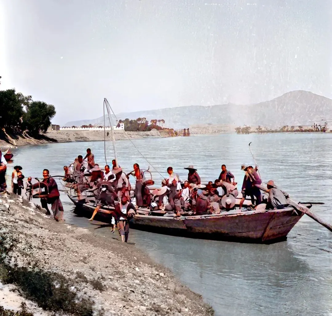 河岸边这只木船,人挤人,肩上的担子一扛,脚一探就蹬上岸,篙一压,船身抖两下,等所有人上齐,船老大一声吆喝,水面划开一道亮痕,行路全靠它,桥远,脚程急,用船最稳当。