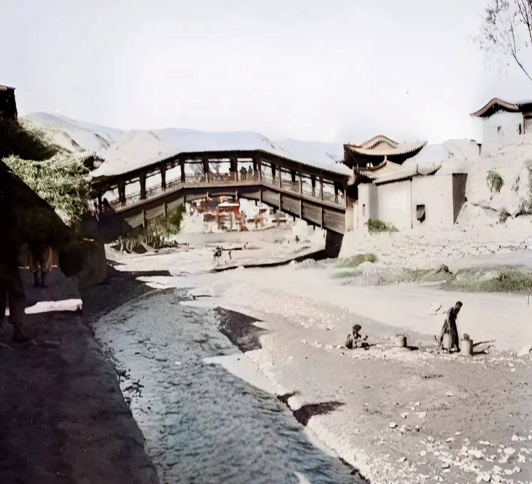 这座握桥,弓形桥身上罩着拱廊,两头各立翼亭,远看像两只拳头对着磕,木板路上一踩吱嘎作响,桥下水浅,石子亮堂堂,那是兰州人的老记忆,听说后来拆了,心里总觉空了一块。
