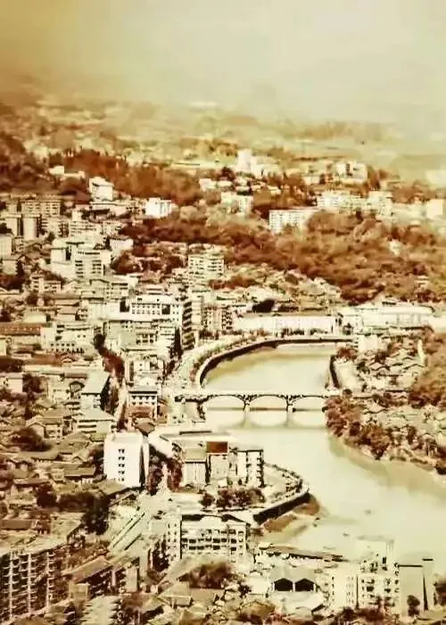 1980年自贡市全景照,釜溪河两边到处高楼林立,也还有不少的瓦房。