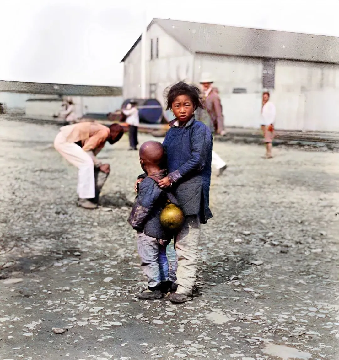 姐姐的蓝布褂子洗得发白,手却牢牢护着弟弟的后脖颈,脚下是碎石碴子铺的站前广场,远处有人拿石头砸地找平,铁道线在光里一闪一闪,这一幕我一眼就想起奶奶那句顺嘴话,奶奶说,小娃娃背葫芦图个**“福禄”**,春上裁新衣,还要在肩窝上绣一对小葫芦,压邪也压惊。