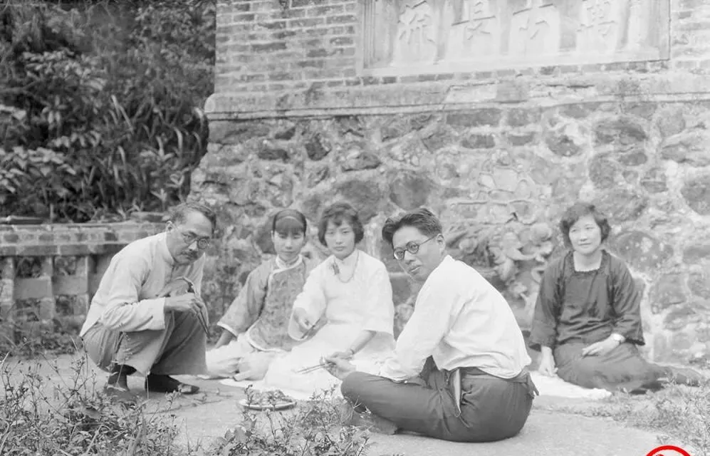 图中的这堆茶点与竹篮,叫郊游野餐,石墙上阴刻着字,草地上坐得东倒西歪,有人端着杯,有人笑着眯眼,菜色看不清,神情却轻松,那个年头忙归忙,也要找个晴天出城透口气,这点讲究,现在换成自驾与咖啡店了。