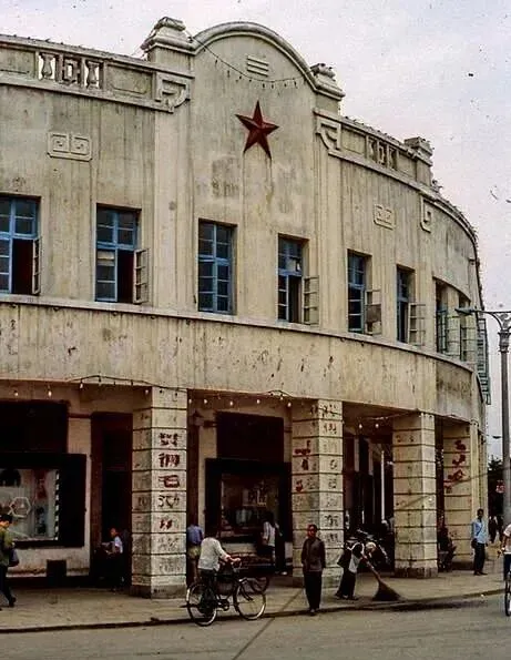 这栋骑楼的二楼嵌着红星,立柱上还刷着标语,墙皮斑驳,转角有玻璃窗陈列,风一吹,旧旗子“哗啦”作响,走过去总得多看两眼。