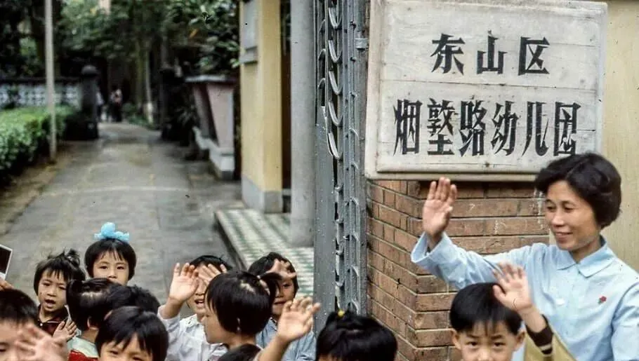 这张是东山区某幼儿园,老师在门口挥手,孩子们挤在门边喊再见,门柱上的瓷牌蹭得发亮,妈妈说你小时候也这么磨叽,走三步还回头。