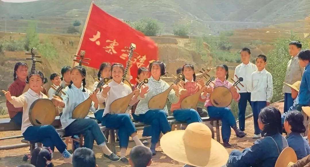 这支队叫三弦宣传队,琵琶、板胡、铜锣一摆开,后头一面红旗追着风跑,小曲儿一响,孩子们就挪板凳往前凑,唱到“学大寨”,掌声啪啪响。