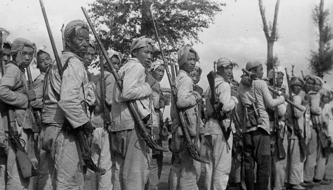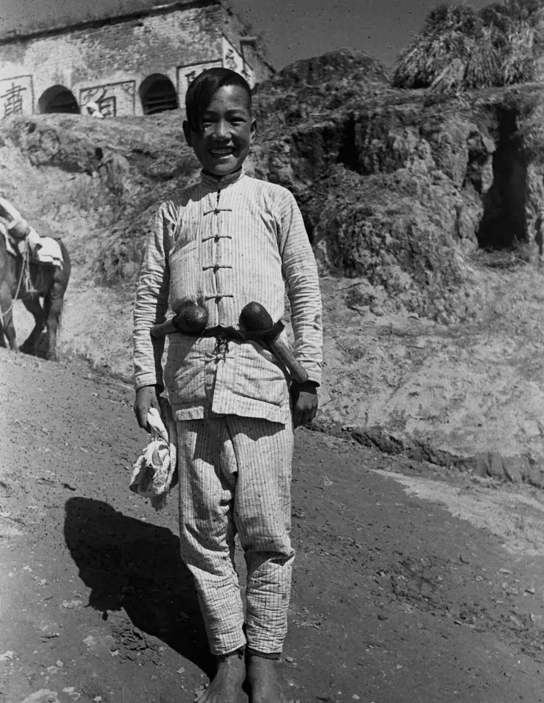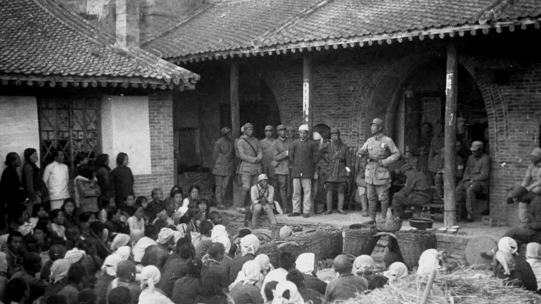 这个拿着小烟斗的洋面孔叫哈里森福尔曼,穿着浅色短袖军便装,口袋带盖子,腰间一条粗皮带勒得紧紧的,他一路从重庆辗过去,镜头怼得很近,才拍下这批珍贵的影像,他说话我听不懂,但他眼神里的**“认真”**,一看就懂。