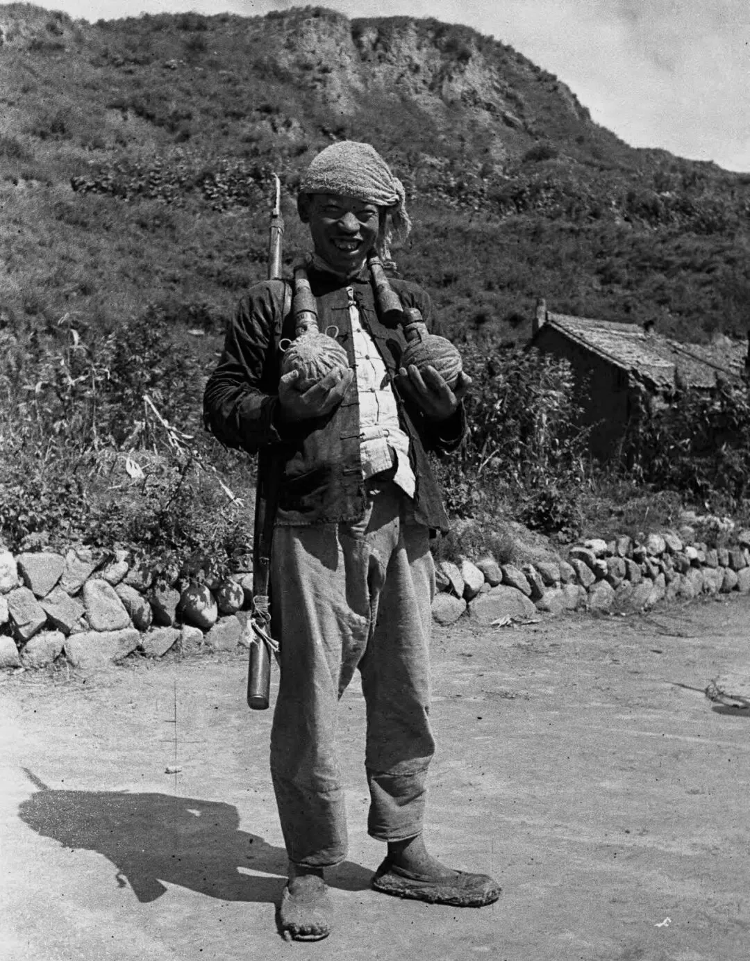 图中这位两手捧着土雷,腰间还别着两个,鞋底缝得厚厚的,笑得见牙不见眼,我妈看见这张,总要叮嘱一句,“会笑的人,命再苦也不怕”。